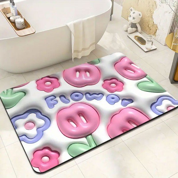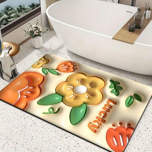 Add a touch of fun and safety to your bathroom with this cute 3D effect print bath mat. Soft, non-slip, and highly absorbent, providing comfort and preventing slips.