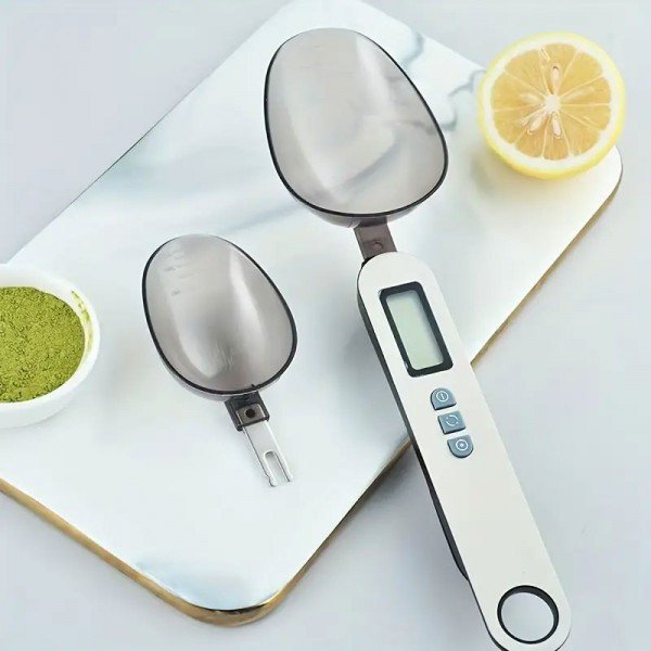 Get precise measurements for your cooking and baking with this mini electronic kitchen scale featuring a convenient double spoon design. Measures in grams and is perfect for small quantities.