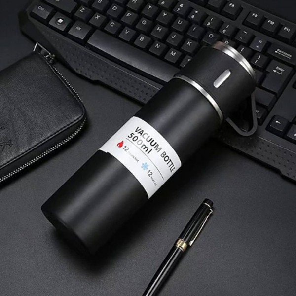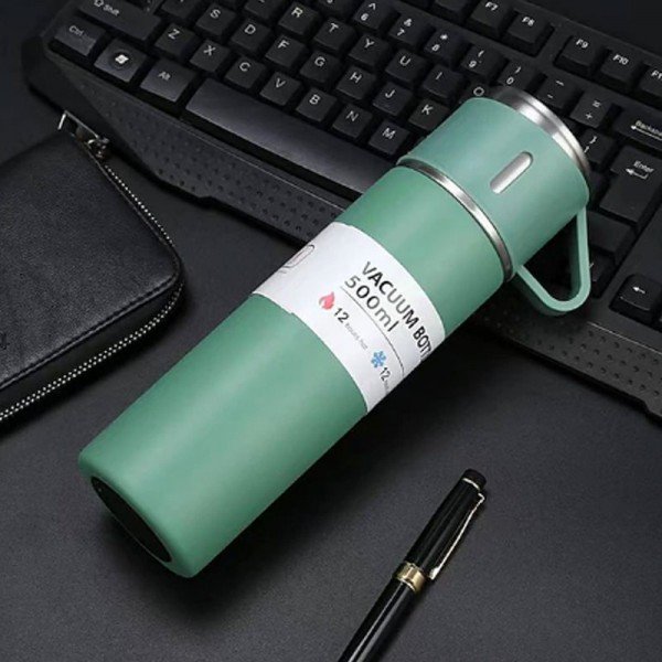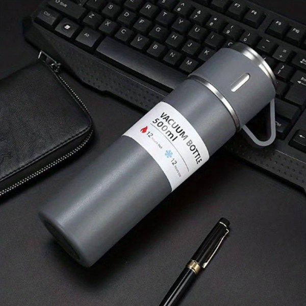 Enjoy your favorite beverages on the go with this stainless steel thermal mug. Its double-wall insulation keeps drinks hot or cold, perfect for car commutes or travel. Also great for tea.