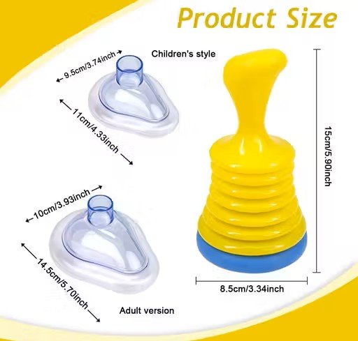 EASY AND QUICK : The choking rescue device is composed by puller and face cover. Connecting the puller and face cover, then put the face cover on the mouth, press down the puller and quickly pull then the puller. Repeat the steps untile the air pressure will bring out the object stucked in the throat.