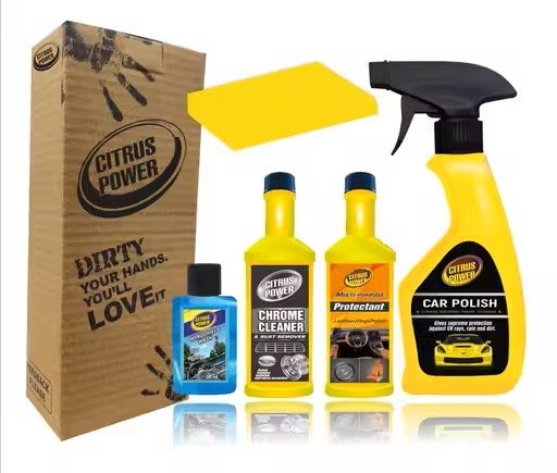 Items Included: Car polish, all-in-one shiner/protectant, chrome cleaner (rust remover), windshield cleaner/wiper fluid, cleaning sponge
