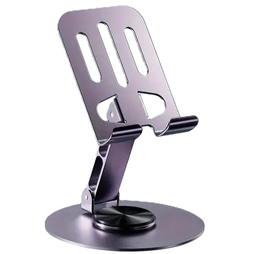 A versatile mobile phone stand that offers 360-degree rotation and multiple folding angles for optimal viewing. It’s designed to be adjustable and stable for various uses like watching videos or video calls.