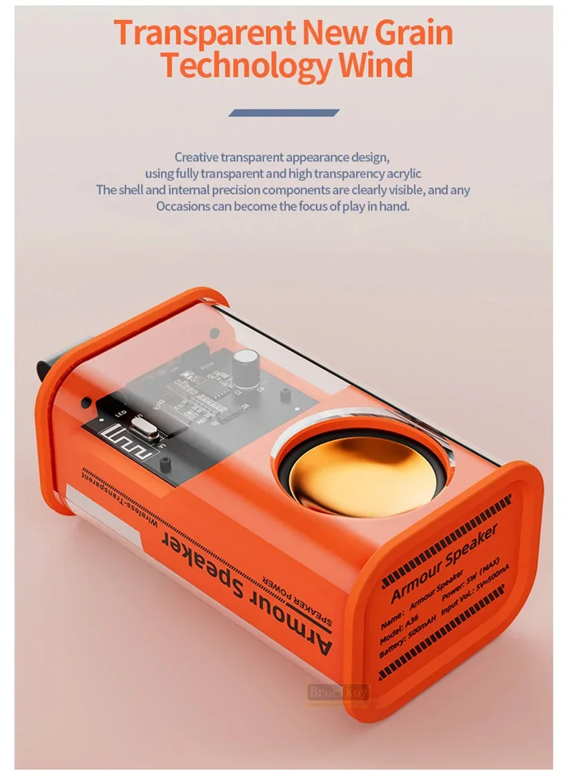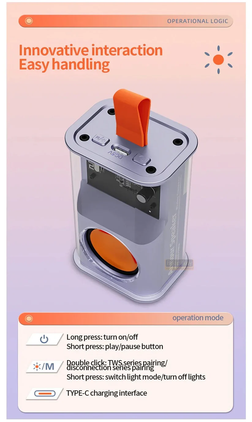 Enjoy crystal-clear sound and a stylish look with the CreaTeck K08 Transparent Design Speaker. This portable Bluetooth speaker delivers high-fidelity stereo audio with deep bass, making it perfect for music lovers. Its transparent design adds a modern, eye-catching touch to any space. Compact and lightweight, it’s easy to carry anywhere, whether at home, outdoors, or during travel. The rechargeable battery ensures hours of uninterrupted playback, and it also supports wired connections via a 3.5mm AUX port. USB charging makes it convenient to recharge, while its durable build ensures long-lasting performance.