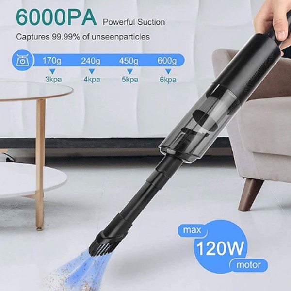 Keep your car interior spotless with the StarFire 6000Pa cordless car vacuum cleaner. Powerful suction in a portable design makes cleaning up messes quick and easy. Includes attachments for thorough cleaning.